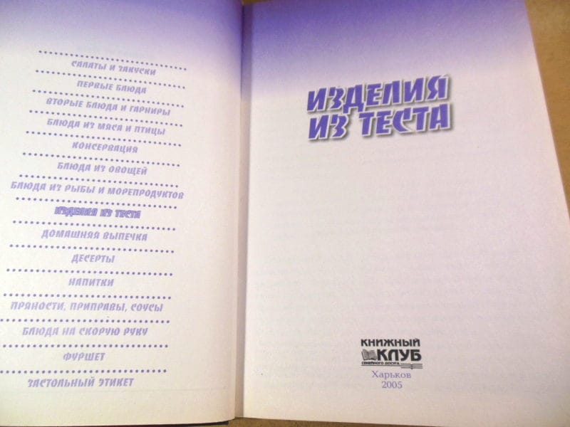 Книга представляет собой сборник рецептов разнообразных изделий из теста. В ней можно найти рецепты для различных видов теста, включая бисквитное, дрожжевое, песочное и слоеное.