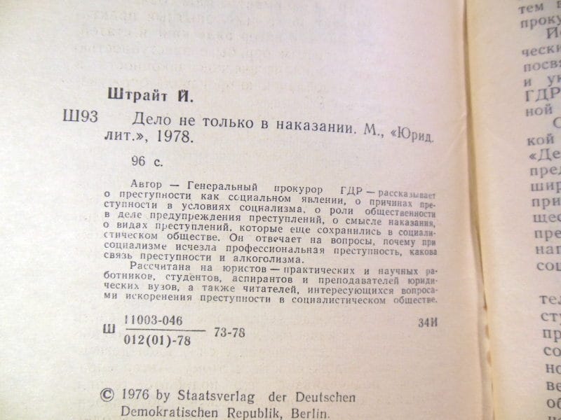 Автор — генеральный прокурор ГДР — рассказывает о преступности, как социальном явлении, о причинах преступности в условиях социализма, о роли общественности в деле предотвращения преступлений, о смысле наказания, о видах преступлений, которые еще сохранились в социалистическом обществе. Он отвечает на вопросы, почему при социализме исчезла профессиональная преступность, какова связь преступности и алкоголизма. Книга рассчитана на юристов — практических и научных работников, преподавателей юридических ВУЗов…
