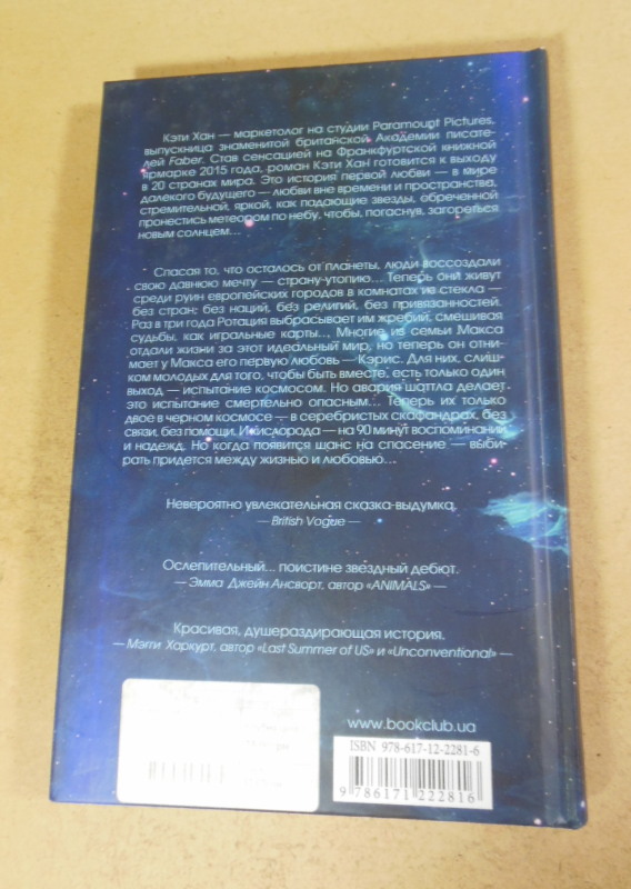 Пронзительная смесь научной фантастики и любовной драмы, действие которой разворачивается в двух временных линиях. В настоящем Кэрис и Макс парят в открытом космосе с запасом кислорода всего на 90 минут, отчаянно сражаясь за жизнь. Параллельно читатель узнает историю их прошлого на Земле будущего — в утопическом обществе, где глубокие привязанности и браки запрещены правилами, поощряющими индивидуальное саморазвитие. Это история о выборе между личной свободой и любовью, ценой которой может стать целая вселенная.