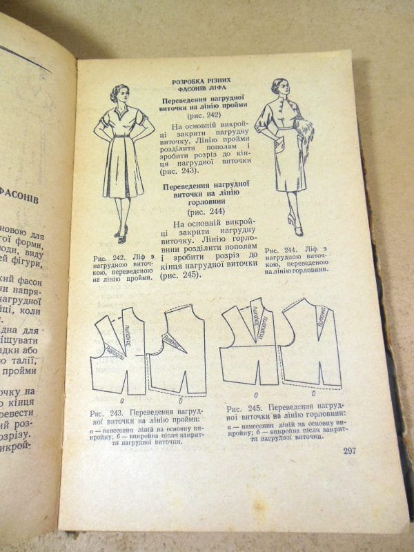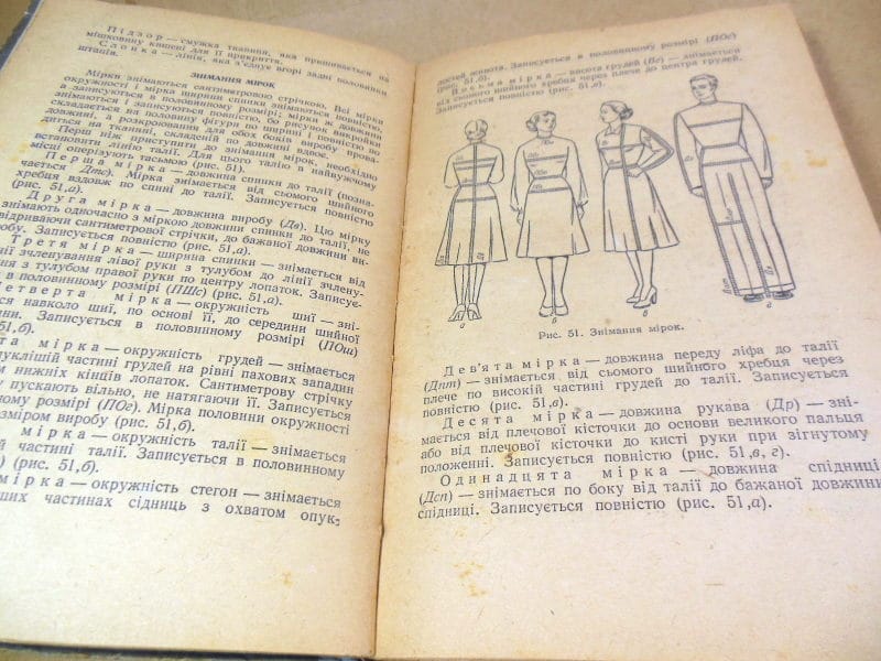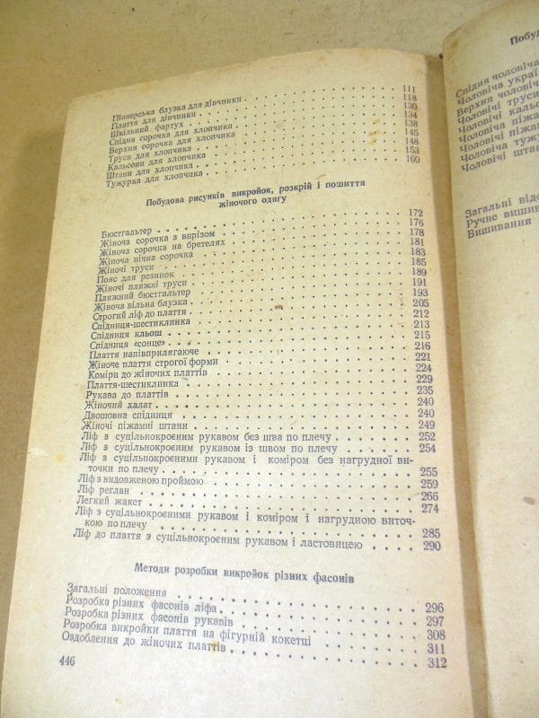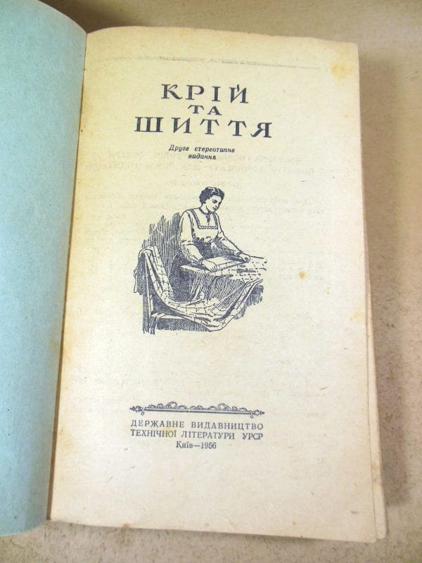 Головніна М. та ін. Крій та шиття. Переклад з російського видання 1954 року Л.Денисенко і Ф.Лисенко. Київ Держтехвидав України 1956г. 447 с., іл. Палiтурка: Картонна, корінець тканинний, звичайний формат.