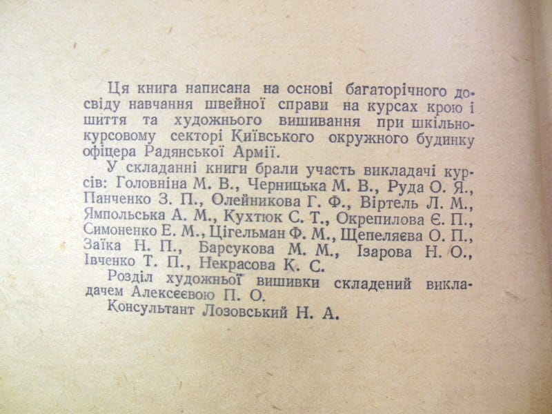 Ця книга написана на основі багаторічного досвіду навчання швейної справи на курсах крою і шиття та художнього вишивання Київського будинку офіцера