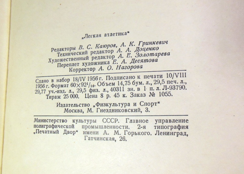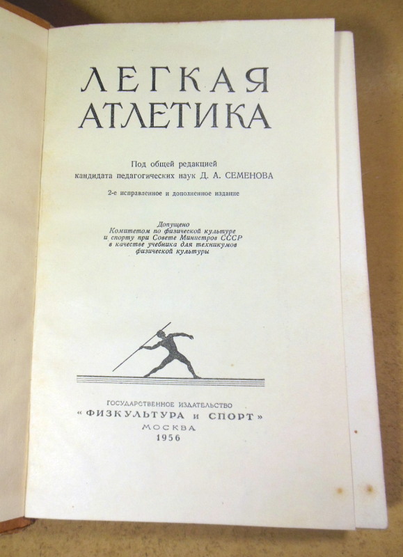 Семенов Д. А. (ред.). Легкая атлетика. М.: Физкультура и спорт, 1956. 472 с. Твердый переплет, Увеличенный формат.
