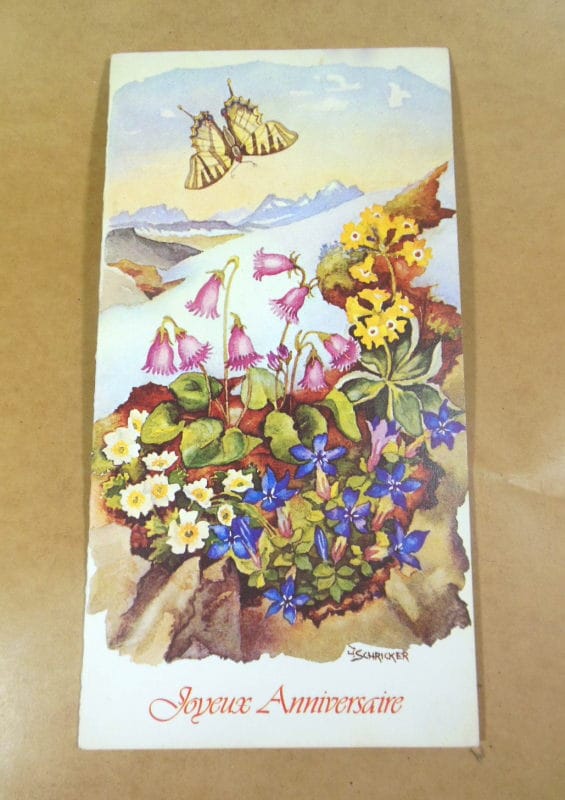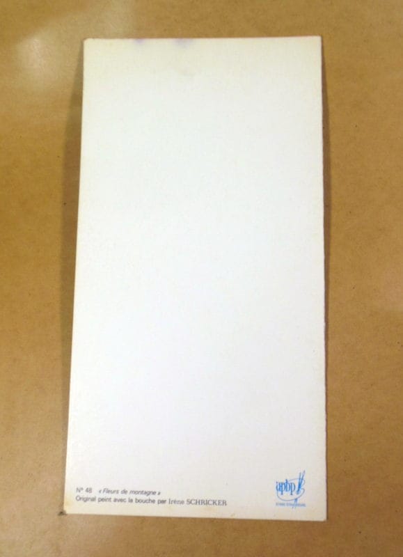 № 48 «Fleurs de montagne». Original peint avec la bouche par Irène SCHRICKER. Чиста листівка. Розмір: 18 х 19 см.