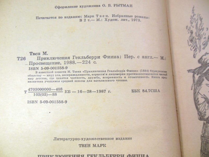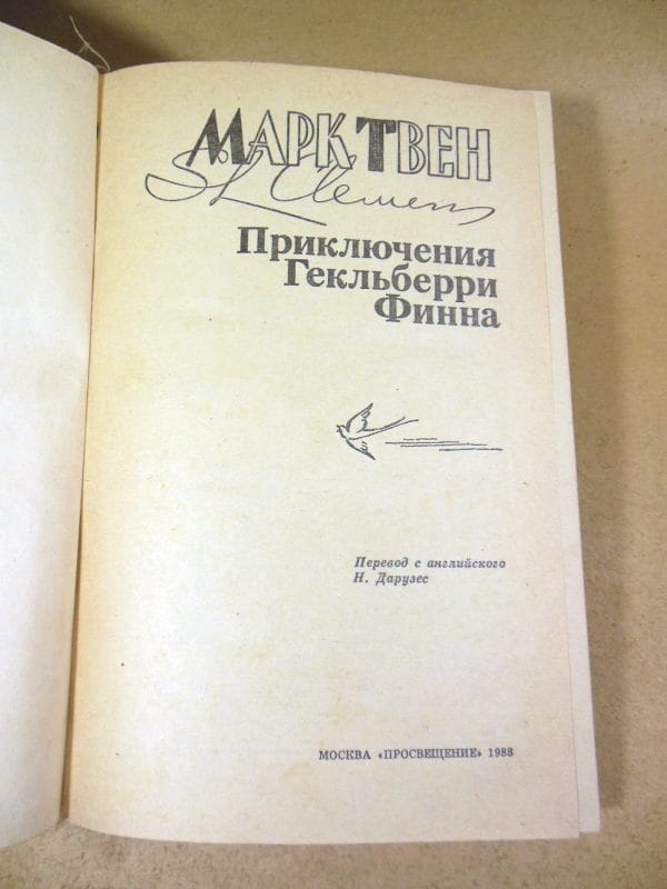 Твен Марк. Приключения Гекльберри Финна. Перевод с английского Н. Дарузес. М. Изд-во Просвещение. 1988г. 224с. Твердый переплет, немного увеличенный формат.