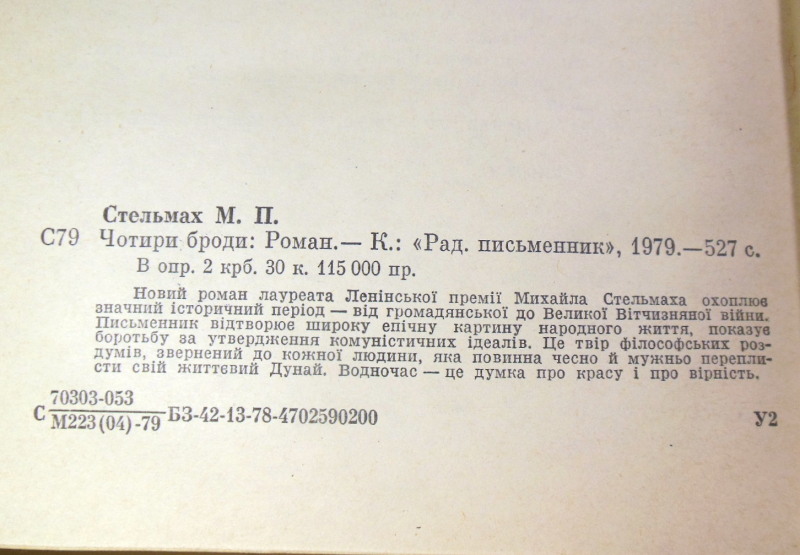 Романом «Чотири броди» Михайло Стельмах завершує свою знамениту волинську епопею, охоплюючи значний історичний період — від Громадянської війни до повоєнних років. Це лірико-романтичний твір про долю українського села, де через образ Марка Безсмертного автор розкриває глибокі філософські роздуми про спадкоємність поколінь, вірність землі та моральний вибір людини. Письменник одним із перших в українській літературі звернувся до трагічних тем Голодомору 1933 року та сталінських репресій, створивши широку епічну картину народного життя, сповнену символізму чотирьох «бродів» людського буття.