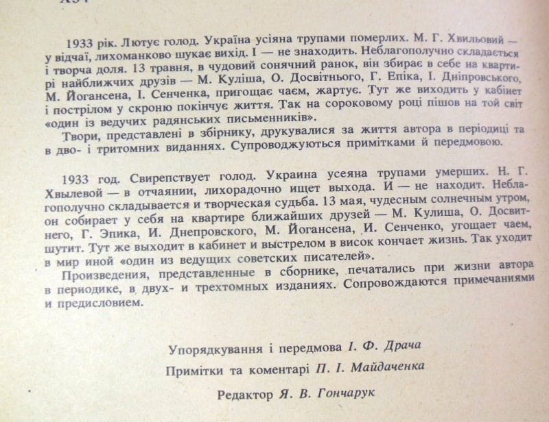 До збірки одного з основоположників української радянської літератури та натхненника «активного романтизму» увійшли кращі новели, оповідання та етюди, що яскраво відображають пошуки та трагізм епохи. Твори Хвильового, позначені стихією революційного оновлення та глибоким психологізмом, супроводжуються розлогою передмовою Івана Драча, яка розкриває складну творчу долю митця, що завершилася фатальним пострілом у травні 1933 року.