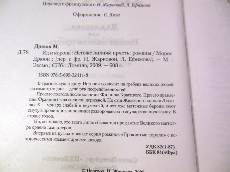 Роман `Яд и корона` — третья книга исторической серии `Проклятые короли` популярнейшего современного французского писателя Мориса Дрюона. Действие романа происходит в последние месяцы недолгого царствования Людовика Х. Роман `Негоже лилиям прясть` — четвертая книга знаменитой на весь мир исторической серии. Действие охватывает последние месяцы недолгого царствования Людовика Х и последующие события, связанные с ожесточенной борьбой за французский престол.
