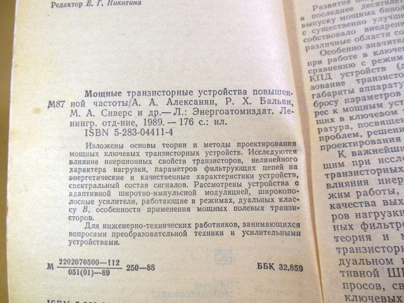 Изложены основы теории и методы проектирования мощных ключевых транзисторных устройств. Исследуются влияние инерционных свойств транзисторов, нелинейного характера нагрузки, параметров фильтрующих цепей на энергетические и качественные характеристики устройств, спектральный состав сигналов. Рассмотрены устройства с адаптивной широтно-импульсной модуляцией, широкополосные усилители, работающие в режимах, дуальных классу В, особенности применения мощных полевых транзисторов. Для инженерно-технических работников, занимающихся вопросами преобразовательной техники и усилительными устройствами.