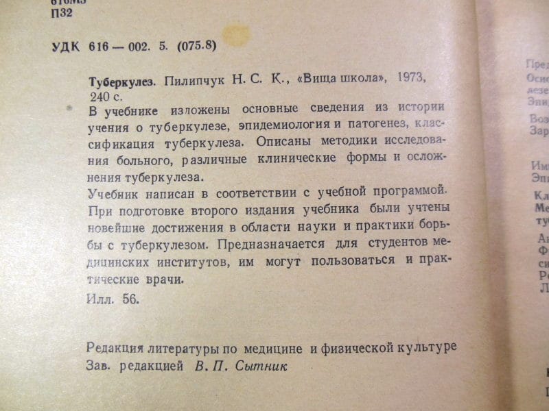 Пилипчук Н.С. Туберкулез. Киев Вища школа 1973г. 240с.ил. твердый переплет, обычный формат.