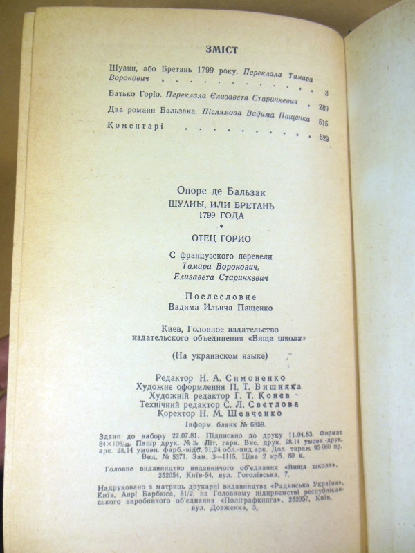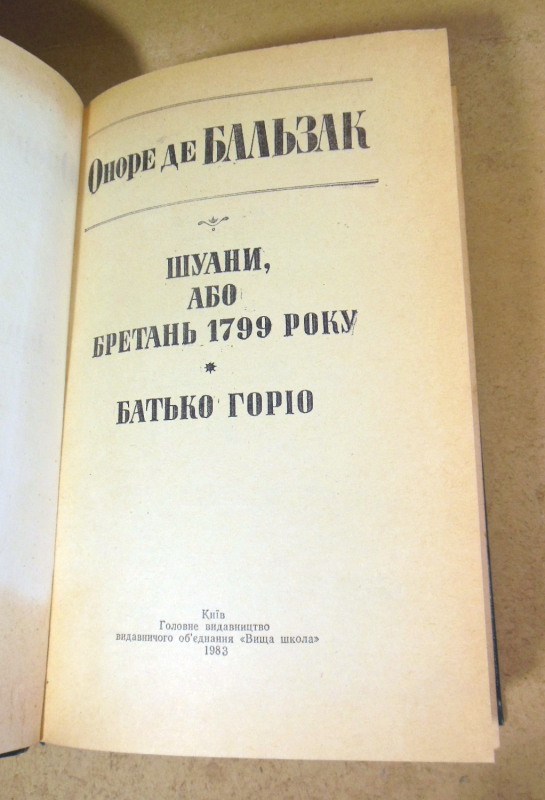 До видання увійшли два визначні твори французького класика з циклу «Людська комедія». Історичний роман «Шуани» переносить читача в часи Великої французької революції, описуючи запеклу боротьбу республіканців проти повсталих бретонських селян-роялістів. Роман «Батько Горіо» — це глибока соціальна драма про безмежну батьківську любов, жертовність та моральне падіння паризького суспільства, де гроші та кар’єра важать більше за родинні зв’язки.