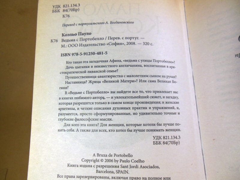 Коэльо Пауло. Ведьма с Портобелло. Перевод с португ. М. София. 2008г. 320 с. Мягкий переплет, уменьшенный формат