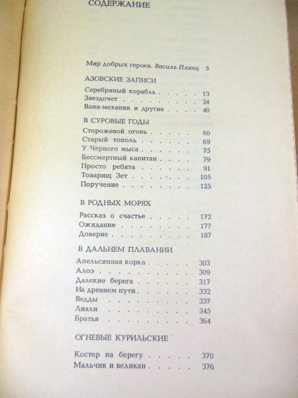 В первый том вошли повести и рассказы, посвященные морской тематике. Произведения рассказывают о героике Великой Отечественной войны, суровой романтике освоения дальневосточных берегов и подвигах военных моряков-первооткрывателей, утвердивших славу Советской морской державы. Включены также впечатления от поездок автора в Японию и Индию.