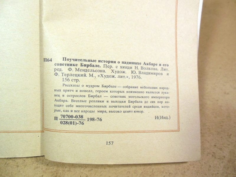 Поучительные истории о падишахе Акбаре и его советнике Бирбале. М. Художественная литература. 1976г. 156 с., цветные илл. Мягкая обложка, уменьшенный формат.