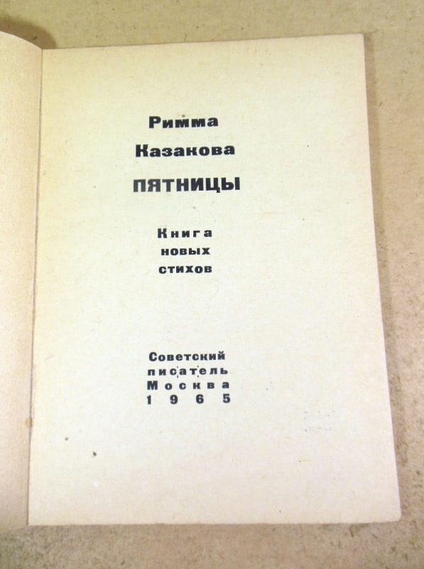 Первые стихи Риммы Казаковой были напечатаны в 1955 году в журнале `Дальний Восток`. В 1958 году хабаровское издательство выпустило первую книгу поэтессы — `Встретимся на Востоке`. В последующие годы в Москве были изданы еще три сборника Р. Казаковой. `Пятницы` — книга новых стихов.