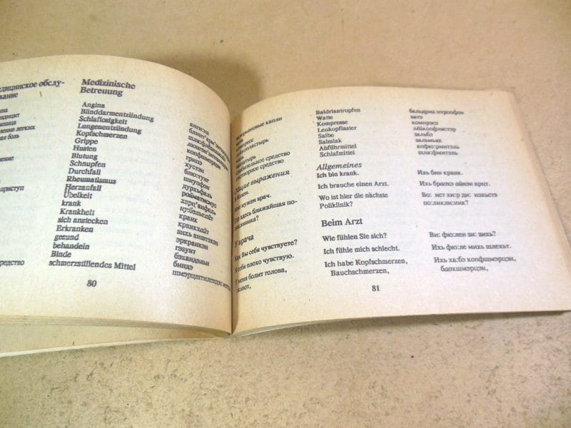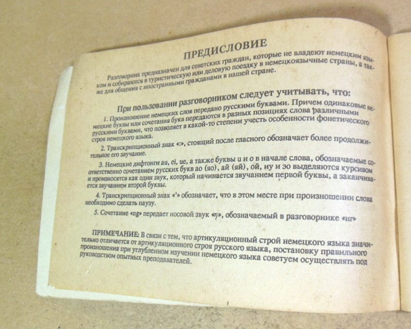 Практическое пособие, предназначенное для советских граждан, планирующих туристические или деловые поездки в немецкоязычные страны, а также для общения с иностранными гостями внутри страны. Разговорник включает в себя наиболее употребительные фразы и выражения, необходимые в типичных ситуациях общения. Особенностью издания является использование русской транскрипции для передачи немецкого произношения, что позволяет пользоваться книгой даже тем, кто совершенно не владеет языком.