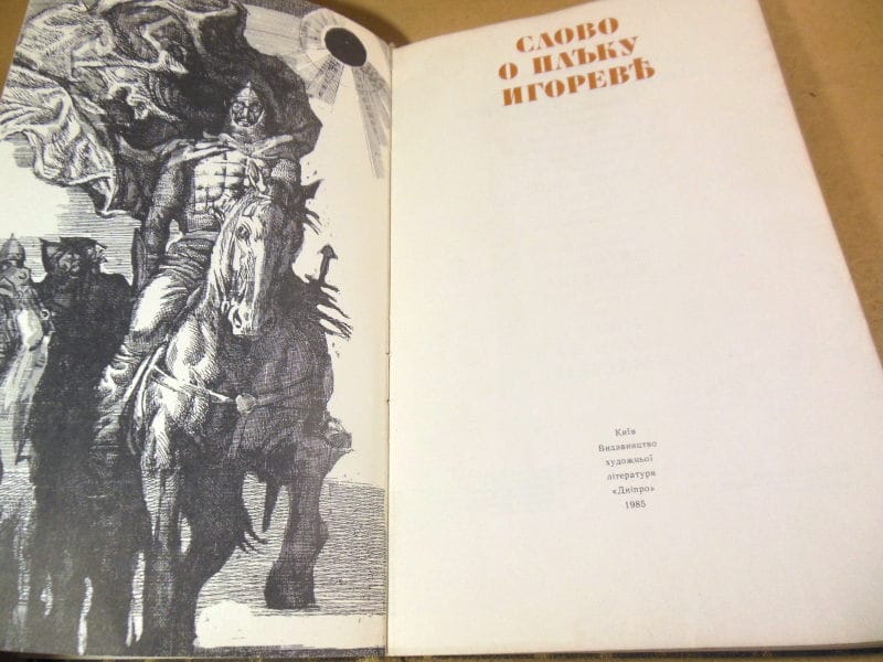 Слово о полку Игореве. На древнерусском, украинском, русском, белорусском языках. Иллюстрации Г. В. Якутовича. Писаный текст А. П. Видоняка. Київ. Дніпро. 1985г. 176с., іл. Переплет: Твердый, увеличенный формат.