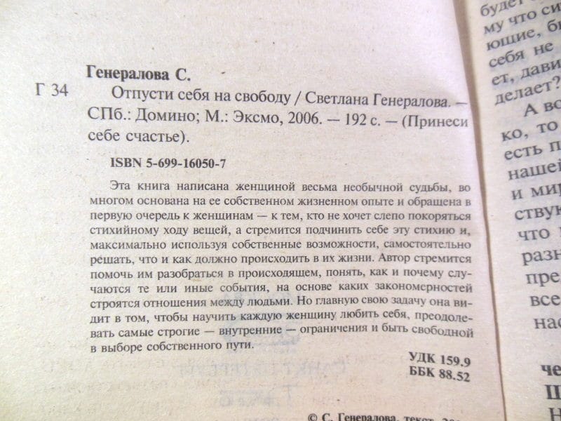 Книга Светланы Генераловой «Отпусти себя на свободу» — это искренний разговор о том, как женщине обрести внутреннюю независимость. Автор, женщина необычной судьбы, делится личным опытом и помогает читательницам разобраться в закономерностях человеческих отношений.