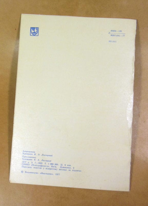 Чиста листівка. Розмір: 15 х 21 см.