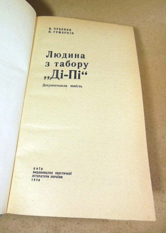 Чубенко В., Тумаркін Я. Людина з табору `Ді-Пі`. Документальна повість. Київ. Політвидав України. 1978г. 192с. Палiтурка: Картонна, корінець тканинний, звичайний формат