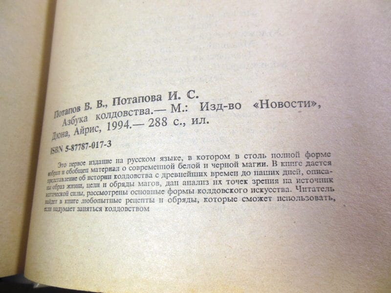 Потапов В., Потапова И. Азбука колдовства. М Новости 1994г. 288 с., ил. Твердый переплет, Обычный формат.
