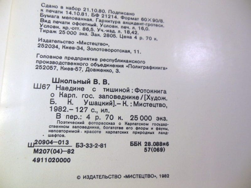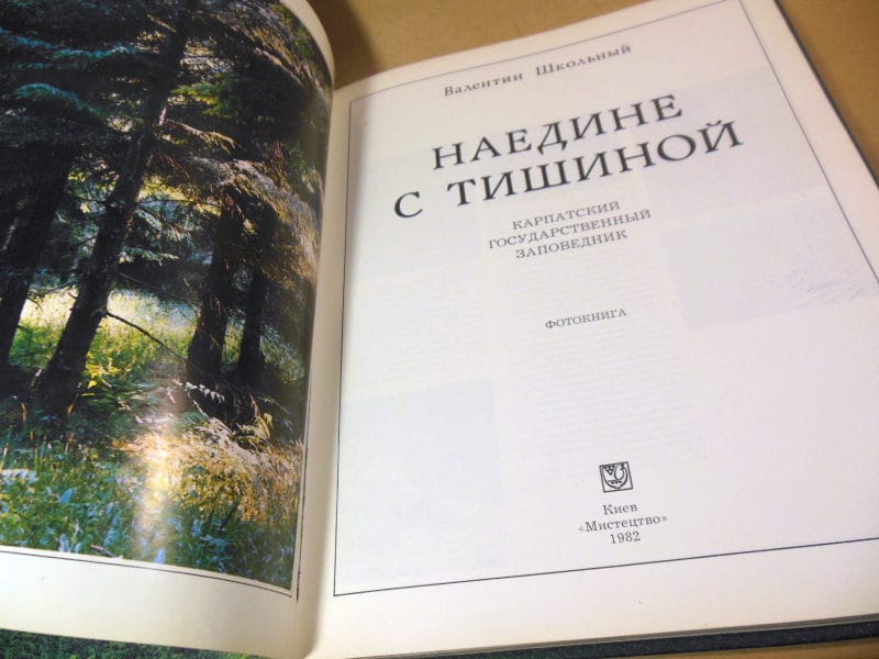 Школьный В. Наедине с тишиной. Фотокнига о Карпатском государственном заповеднике. Киев Мистецтво 1982г. 127 с., ил. Переплет: Твердый, Энциклопедический формат.