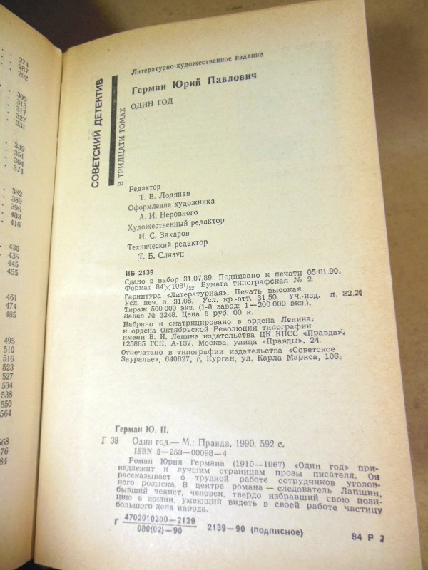 Герман Ю.П. Один год. Серия `Советский детектив` в тридцати томах. Т. 7. М. Правда 1990г. 592 с. Твердый переплет, Обычный формат.